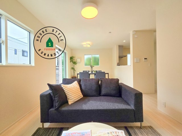 【居間・リビング】キッチンからリビングをしっかり確認できます。家族の笑顔があふれる空間になりそうですね。※家具はCGを合成したものです。