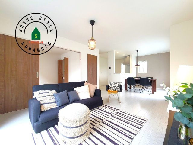 【居間・リビング】キッチンからリビングをしっかり確認できます。家族の笑顔があふれる空間になりそうですね。