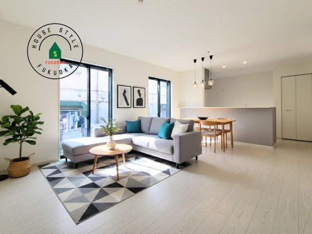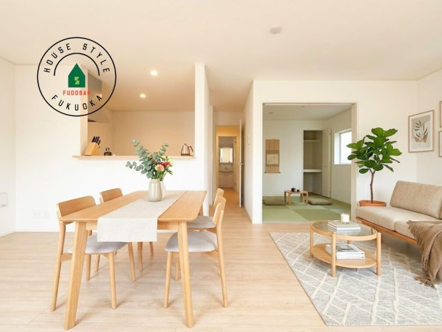 【内観:施工例】明るく開放的なリビングダイニングは豊かな陽光が注ぎ込み、やすらぎの空間を演出してくれます。ご家族で楽しいひとときをお過ごし下さい。※家具はCGを合成したものです。