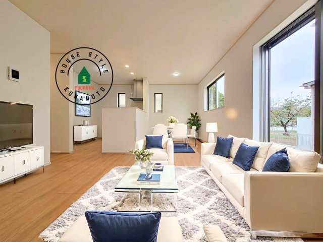 【内観:施工例】明るく開放的なリビングダイニングは豊かな陽光が注ぎ込み、やすらぎの空間を演出してくれます。ご家族で楽しいひとときをお過ごし下さい。※家具はCGを合成したものです。