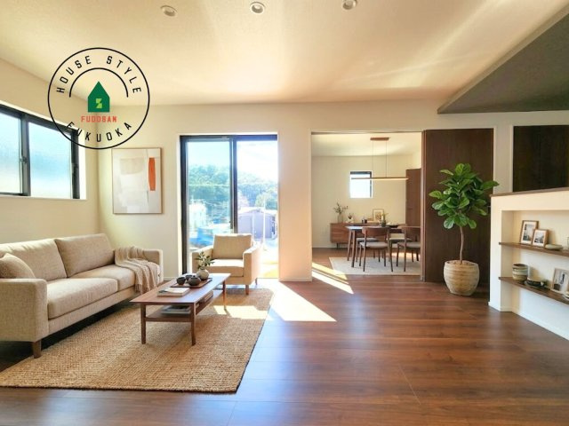 【内観:施工例】明るく開放的なリビングダイニングは豊かな陽光が注ぎ込み、やすらぎの空間を演出してくれます。ご家族で楽しいひとときをお過ごし下さい。※家具はCGを合成したものです。