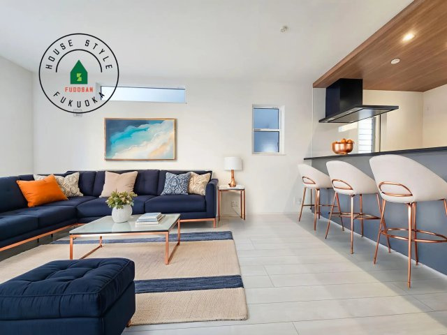 【内観:施工例】キッチンからリビングをしっかり確認できます。家族の笑顔があふれる空間になりそうですね。※家具はCGを合成したものです。