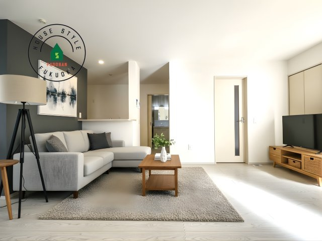 【居間・リビング】キッチンからリビングをしっかり確認できます。家族の笑顔があふれる空間になりそうですね。※家具はCGを合成したものです。
