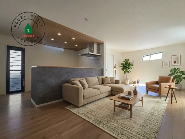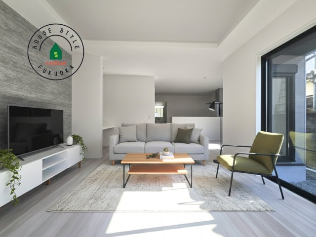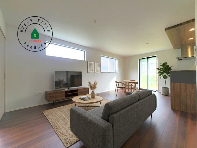 【内観:施工例】明るく開放的なリビングダイニングは豊かな陽光が注ぎ込み、やすらぎの空間を演出してくれます。ご家族で楽しいひとときをお過ごし下さい。※家具はCGを合成したものです。