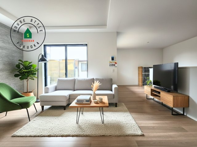 【居間・リビング】明るく開放的なリビングダイニングは豊かな陽光が注ぎ込み、やすらぎの空間を演出してくれます。ご家族で楽しいひとときをお過ごし下さい。※家具はCGを合成したものです。