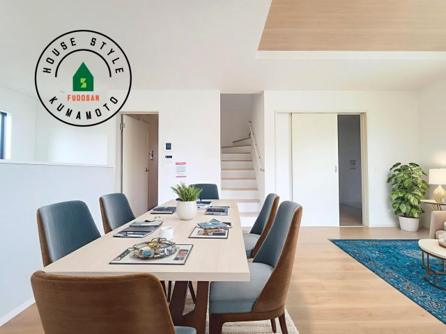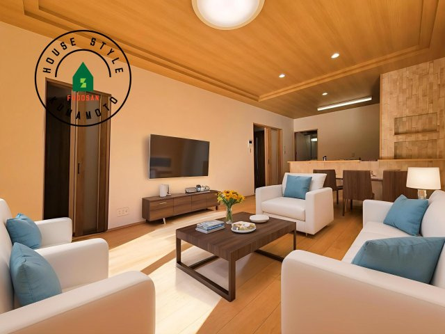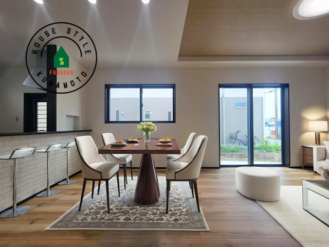 【内観:施工例】キッチンからリビングをしっかり確認できます。家族の笑顔があふれる空間になりそうですね。※家具はCGを合成したものです。同仕様写真
