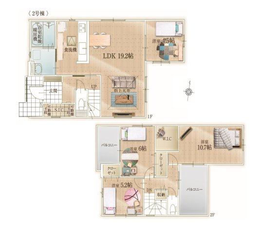 【居間・リビング】明るく開放的なリビングダイニングは豊かな陽光が注ぎ込み、やすらぎの空間を演出してくれます。ご家族で楽しいひとときをお過ごし下さい。※家具はCGを合成したものです。