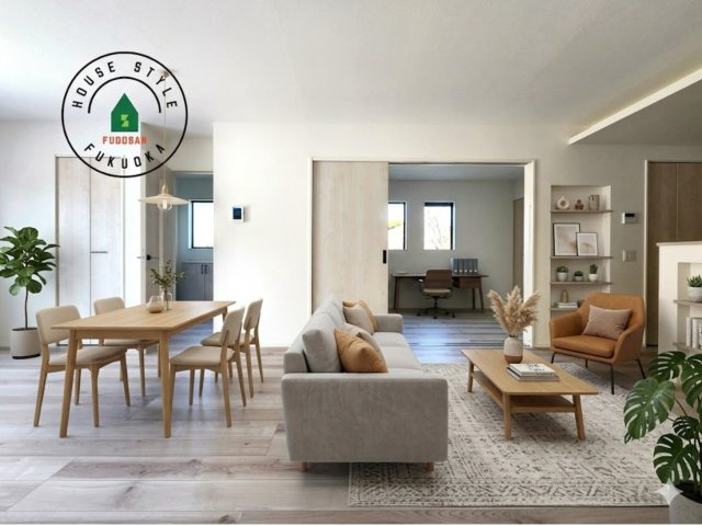 【居間・リビング】明るく開放的なリビングダイニングは豊かな陽光が注ぎ込み、やすらぎの空間を演出してくれます。ご家族で楽しいひとときをお過ごし下さい。※家具はCGを合成したものです。
