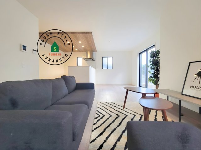 【居間・リビング】キッチンからリビングをしっかり確認できます。家族の笑顔があふれる空間になりそうですね。※家具はCGを合成したものです。