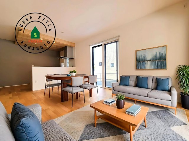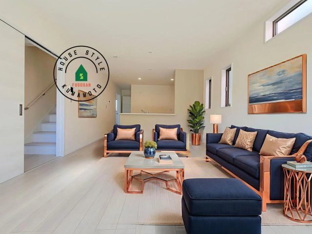 【居間・リビング】キッチンからリビングをしっかり確認できます。家族の笑顔があふれる空間になりそうですね。※家具はCGを合成したものです。