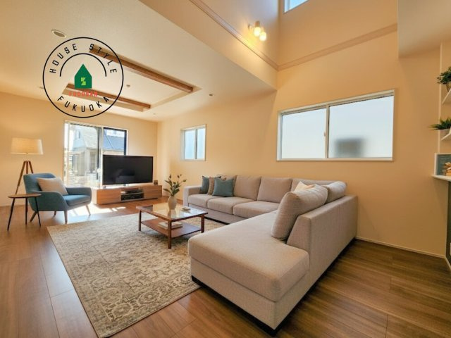 【内観:施工例】明るく開放的なリビングダイニングは豊かな陽光が注ぎ込み、やすらぎの空間を演出してくれます。ご家族で楽しいひとときをお過ごし下さい。※家具はCGを合成したものです。
