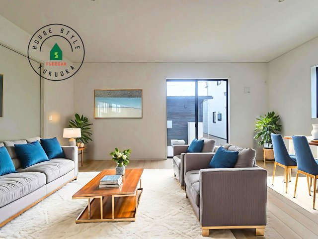 【内観:施工例】キッチンからリビングをしっかり確認できます。家族の笑顔があふれる空間になりそうですね。※家具はCGを合成したものです。同仕様写真