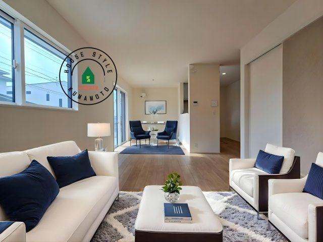 【居間・リビング】明るく開放的なリビングダイニングは豊かな陽光が注ぎ込み、やすらぎの空間を演出してくれます。ご家族で楽しいひとときをお過ごし下さい。※家具はCGを合成したものです。